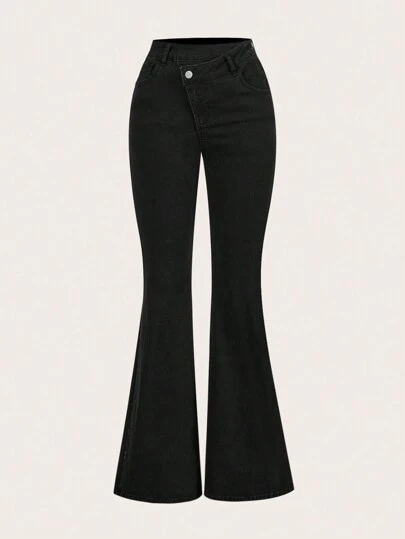 SHEIN Tall 女士牛仔裤 黑色紧身喇叭裤 交叉腰喇叭裤 喇叭紧身裤 秋季女装 秋季 - 黑色 - 查看 1