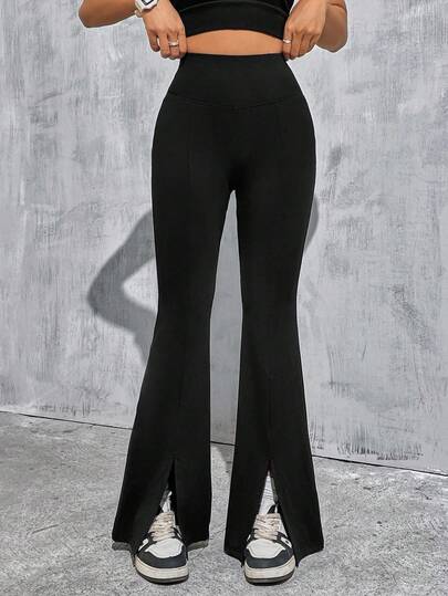 SHEIN 少女时尚百搭喇叭裤 - 黑色 - 查看 1