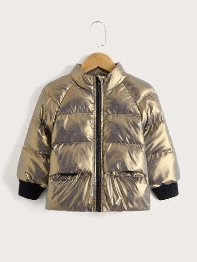 SHEIN 男童撞色拼接插肩袖棉衣 - 銅色 - 查看 1
