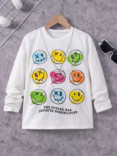 SHEIN 男大童卡通和標語圖案T恤 - 白色 - 查看 1