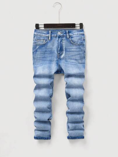 SHEIN 青少年男孩休闲日常百搭水洗牛仔裤 - 淺色水洗藍 - 查看 1
