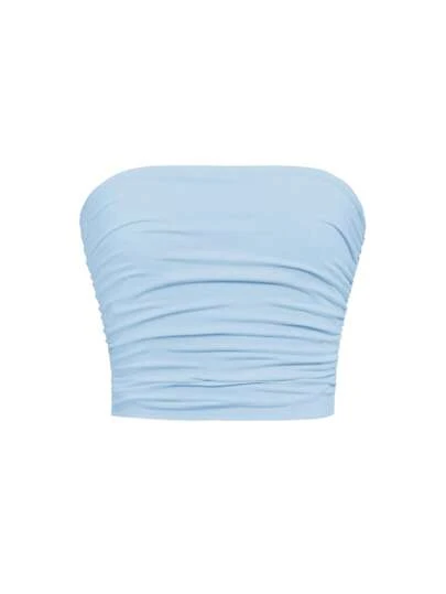 SHEIN 青少年女孩简约舒适褶饰弹性贴身无肩带抹胸上衣 - 淺藍色 - 查看 1