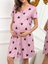 Moonlight & Mama 2件套心形印花滚边哺乳孕妇长袖睡衣套装
