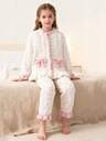 SHEIN 女士可爱爱心图案加厚绒毛睡衣套装,长袖上衣和裤子,秋冬爱心印花绒毛睡衣,毛茸茸的爱心睡衣,舒适爱心绒毛睡衣套装