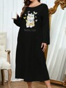 尔蕾丝边饰四分之一纽扣睡衣连衣裙,宽松睡裙,秋冬款