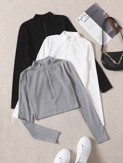 SHEIN Unity 3入組1/4拉鍊短款緊身T恤 - 彩色 - 查看 1