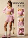 VARSITIE 女式纯色圆领插肩袖露背系带荷叶边下摆运动连衣裙