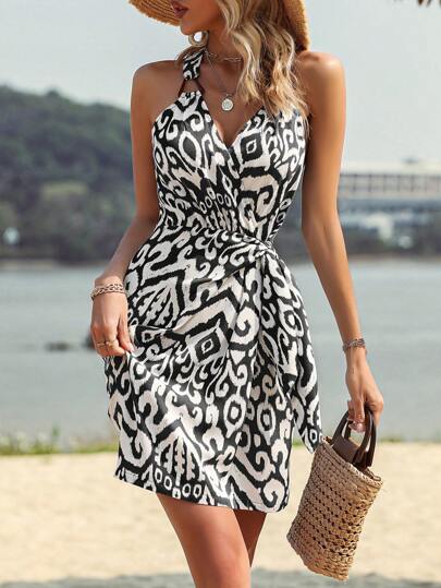 Breezaya 滿版印花側打結洋裝 - 黑色 - 查看 1