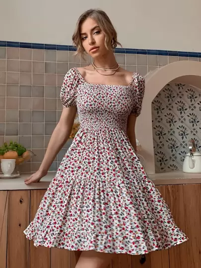 Aveloria 小碎花抽褶女僕洋裝 - 彩色 - 查看 1