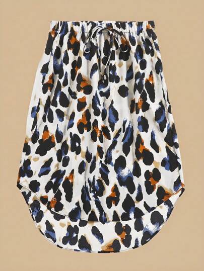 SHEIN VCAY 加上全身印花结前弧形下摆夏季波西米亚风 A 字裙 - 彩色 - 查看 1