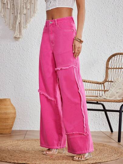 Breezaya 女式磨邊寬褲 - 粉色 - 查看 5