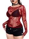 Whyspr 加大码深色系情人节风格红色蕾丝拼接衬衫
