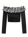 Shutterstock 女款多色蓝色调数码城市 Y2K 像素风格短款上衣 长袖修身 T 恤 图案短款上衣 Rave 上衣 长袖短款 Y2k 服装 女款上衣 Glitch 上衣