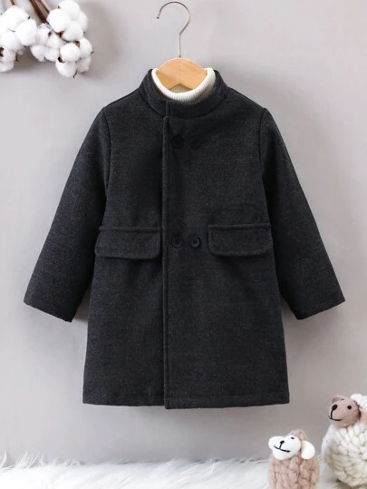 SHEIN 小男孩 1 入組雙排扣翻蓋細節大衣 - 深灰色 - 查看 1