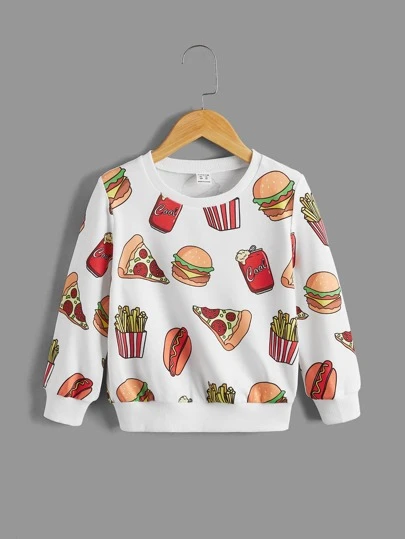 SHEIN 少年男孩食品印花套頭衫 - 白色 - 查看 1