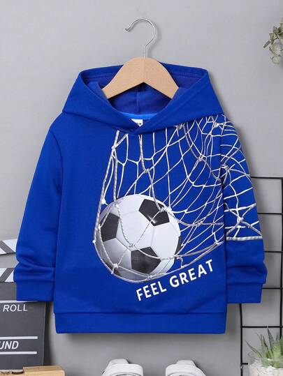 SHEIN 男童足球字母图案卫衣 - 藍色 - 查看 1