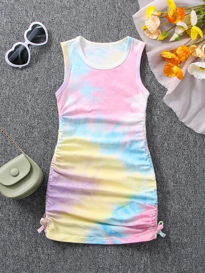 SHEIN 夏季年轻女孩扎染简约时尚圆领连衣裙 - 彩色 - 查看 5