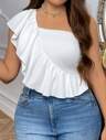 SHEIN Privé 大碼素色後綁帶一字肩襯衫