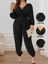 SHEIN Privé 大码女式卡其色缺口领短腿连体裤,秋季和返校季新品
