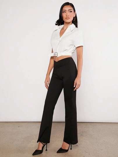 EastFlair 素色金屬扣環腰帶短款襯衫 - 白色 - 查看 1