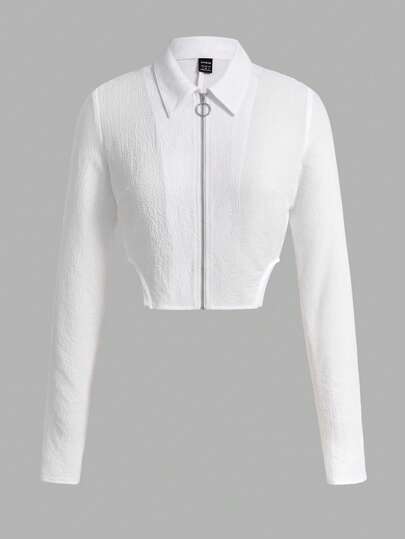 SHEINNeu 拉鏈開襟短款襯衫 - 白色 - 查看 1