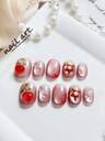 10 片纯手工按压式指甲,圣诞指甲,猫眼指甲,红色指甲,杏仁形指甲,立体图案,假指甲,可爱指甲,高端品质,适合女性和女孩日常或节日佩戴。