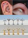 1 件 G23 钛合金 Cz 耳软骨耳屏氧化锆 D 形中隔响片杠铃螺旋耳环 Rook Sung 耳垂穿孔珠宝
