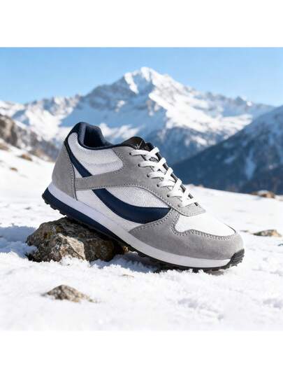 SHUANGXING 男士时尚运动鞋 - 透气织物鞋面,低帮,圆头,轻便耐磨鞋底,系带设计,适合休闲穿着和轻度运动,四季皆宜 - 黑白灰 - 查看 1