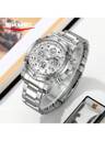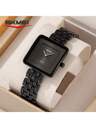 SKMEI 2465 奢华男士数字手表透明不锈钢表带矩形数字显示小型商务腕表
