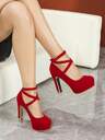 女性夏季黑色麂皮超高跟厚底閃粉粗跟涼鞋