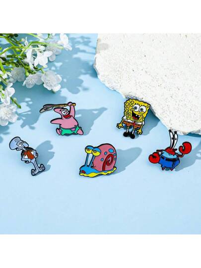 SPONGEBOB 海绵宝宝 1/5 件创意海绵宝宝卡通胸针套装个性化盖瑞蜗牛珐琅别针背包服装首饰金属徽章配饰礼物 - 均碼 - 查看 1