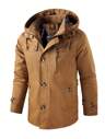 LEDUNTINO 男士秋冬时尚拉链户外休闲夹克,纯色,多口袋设计,可拆卸帽子,字母印花,男友礼物,加厚款式,适合秋冬外出和日常穿着,冬季上衣