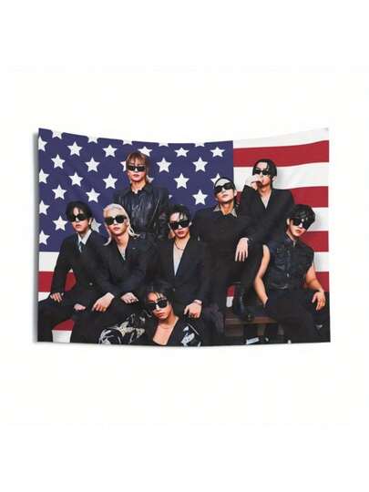[STRAY Kpop Skz Merch] STRAY Kpop Skz Members 1pc American Flag Design Tour Merch - Horizontal Home Decor Banner With Band Member Portraits, 2024 Concert Gift For STAYS, Birthday Present & Fan Accessories, Concert Poster