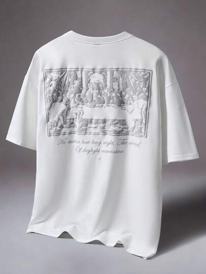 STYNVO 男士休闲畅销款“最后的晚餐”3D立体浮雕图案T恤,日常穿着,男友/老公礼物,周年纪念礼物,白色 - 白色 - 查看 3