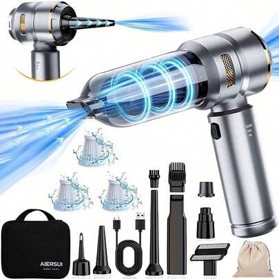 SUITU 16000PA 无刷电机手持式吸尘器,便携式车载吸尘器兼吹风机,配备多种吸嘴,强劲的干湿两用手持式吸尘器,附带多个滤芯和EVA收纳袋,适用于汽车、家庭、办公室和宠物。 - 金色 - 查看 13