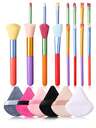 10支装高品质多功能化妆刷套装 + 4个迷你化妆海绵蛋 + 1个大容量旅行化妆品收纳包