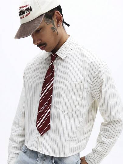 SUMWON 修身长袖条纹衬衫,配可拆卸领带,商务休闲办公装 - 彩色 - 查看 1