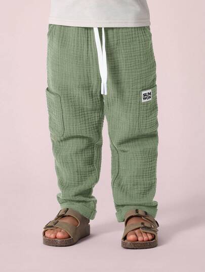 SUMWON 优质棉质平纹细布套头慢跑裤儿童幼儿松紧腰透气舒适夏季春季儿童休闲宽松裤 - 綠色 - 查看 5
