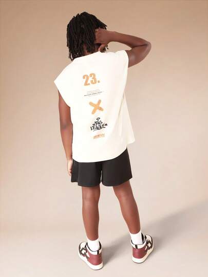 SUMWON 青少年男童大联盟背心短裤套装,印有数字和X形图案,夏季休闲装 - 彩色 - 查看 4