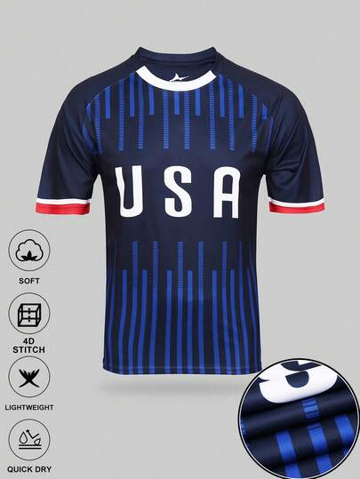 SURUIDA 美国青少年足球队服,长袖运动衫,舒适圆领上衣,印花设计,适合青少年足球比赛、足球训练、日常健身和休闲礼物 - 藍色 - 查看 1