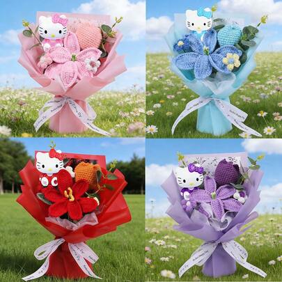 三丽鸥手工针织花束,Hello Kitty百合郁金香针织花束,Hello Kitty手工针织花,永不凋谢的Hello Kitty - 彩色 - 查看 10
