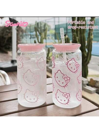 三丽鸥Hello Kitty夏季透明粉色玫瑰水瓶,带吸管,适合户外旅行、居家、运动、通勤,可爱的小猫图案,适合作为她的生日礼物 - 彩色 - 查看 6
