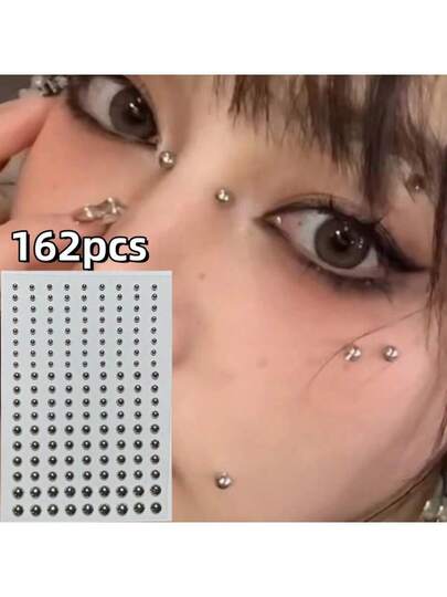 自粘式面部宝石和珍珠,用于化妆、节日珠宝、发饰、水钻贴纸,适用于面部、眼部、化妆、身体 - 多色162pcs - 查看 1