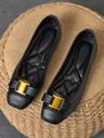 WHDXY 女士方头金属蝴蝶结平底鞋,软底舒适方头一脚蹬休闲鞋,百搭,适合阔腿裤,黑色,舒适易走动