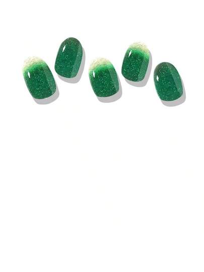 Semi - Cured Gel Nail Strips, 20Pcs Dark Green Glitter Gradient Real Gel Nail Polish Sticker Waterproof Long - Lasting Gel Nail Polish Strips With Nail File And Stick/ Lamp Required