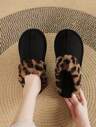 秋冬季豹纹印花+黑色平行带女士室内拖鞋,毛绒拖鞋