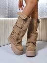 秋冬新款女士中筒时尚PU侧拉链坡跟舒适靴,西部风格侧拉链搭扣,适合度假穿着