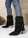 秋冬新款尖头女式粗高跟时尚靴子,英伦风踝靴