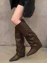 女士新款高跟米色西部靴,百褶靴适合街头派对,高筒靴,秋冬新款纯色优雅牛仔靴,适合派对、办公室、户外