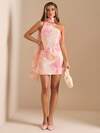 SHEIN BAE 春夏纯色粉色碎花扎染不对称不对称领口露背迷你优雅缎面迷你连衣裙优雅印花迷你连衣裙性感露背迷你连衣裙夏季